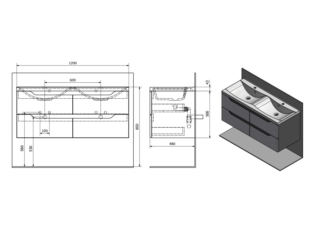 WAVE dvojumyvadlová skříňka 119,7x50x47,8cm, bílá/dub stříbrný