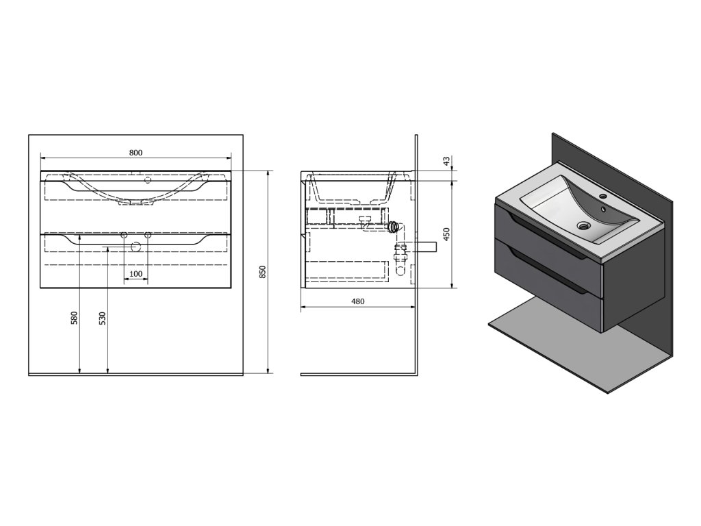 SKA konzole pod umyvadlo/desku 100x22x51cm, černá mat