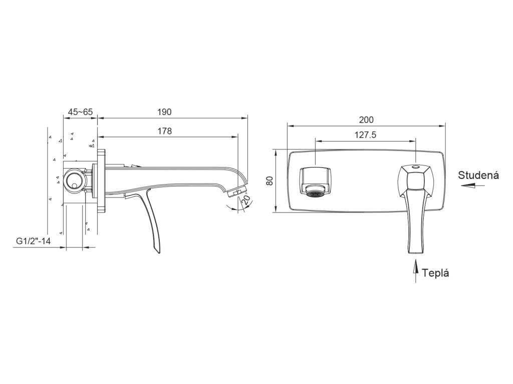 ULTRASAN podomítková dvouprvková umyvadlová baterie, hubice 20cm, černá mat/chrom