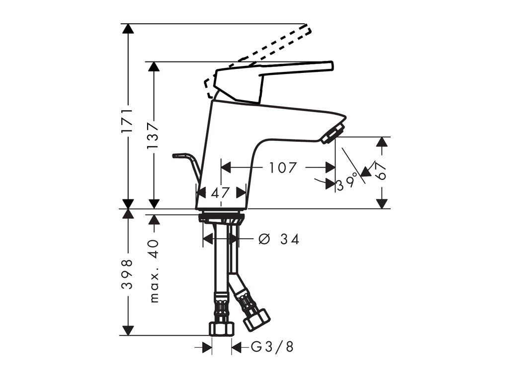 Hansgrohe Logis Loop Baterie umyvadlová 70 s výpustí, s táhlem, chrom, 71150000