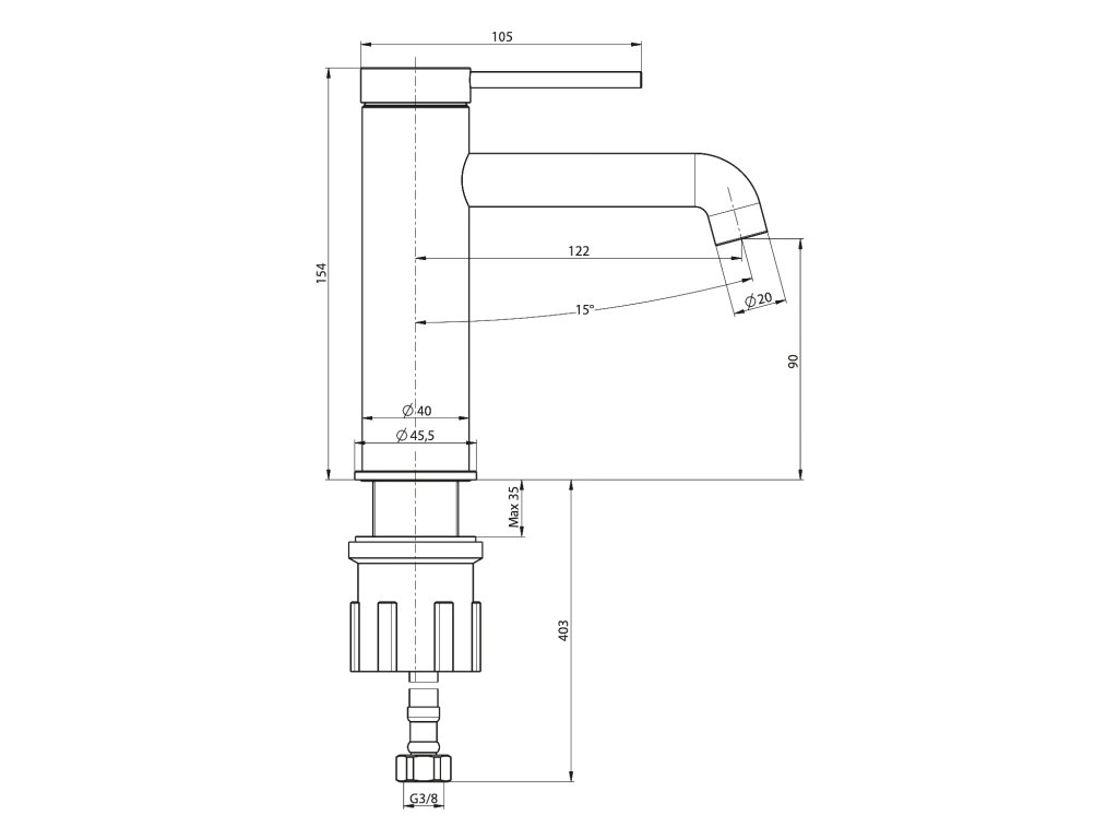 KIRKÉ stojánková umyvadlová baterie s výpustí, chrom