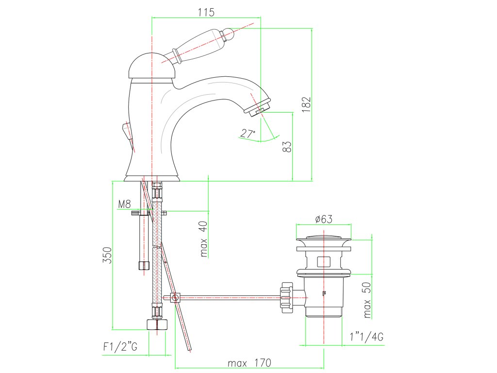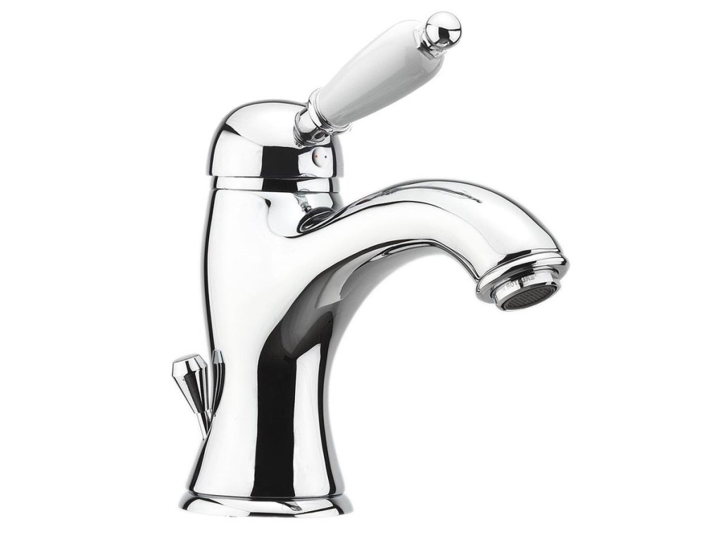 KIRKÉ WHITE stojánková umyvadlová baterie s výpustí, bílá páčka, chrom