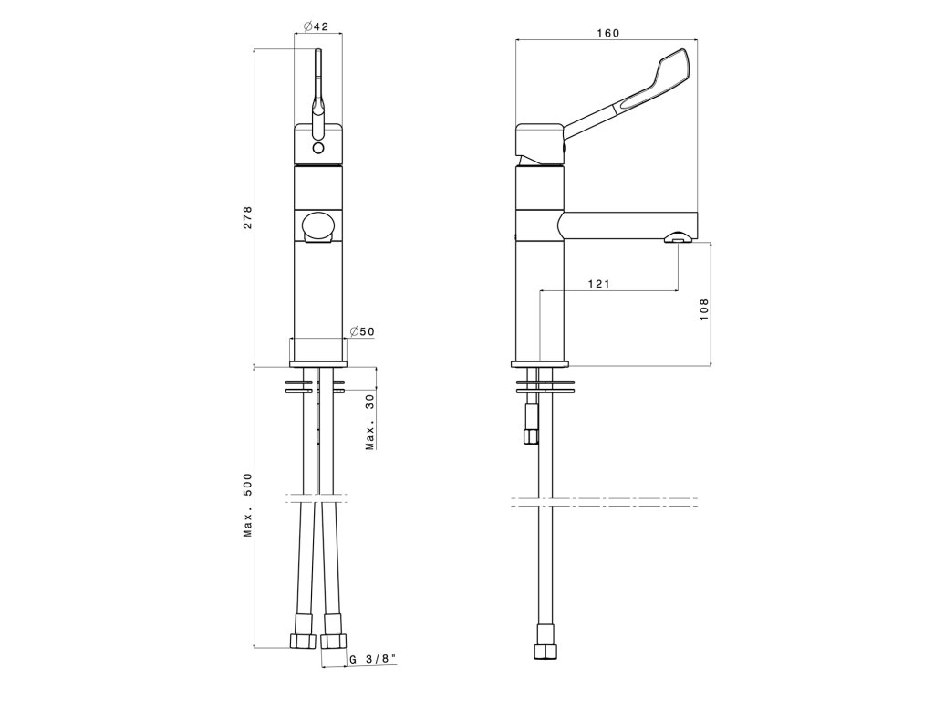 AQUALINE 35 nástěnná baterie, lékařská páka, ramínko S, 177mm, chrom