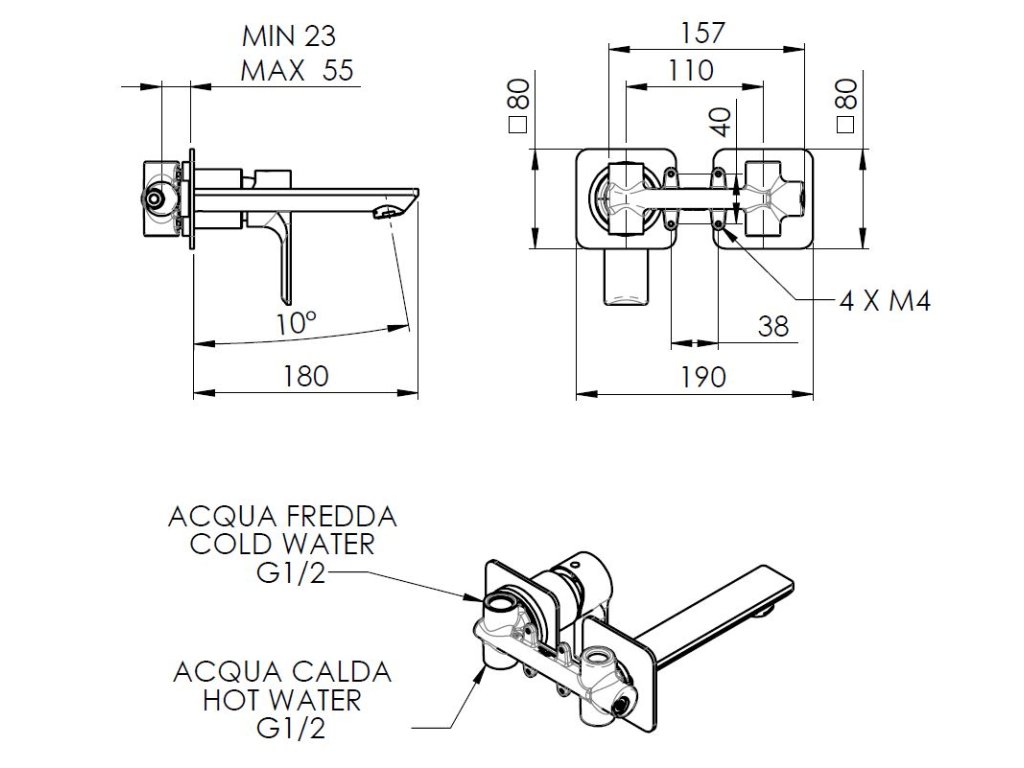 AQUALINE 35 nástěnná baterie, lékařská páka, ramínko S, 177mm, chrom