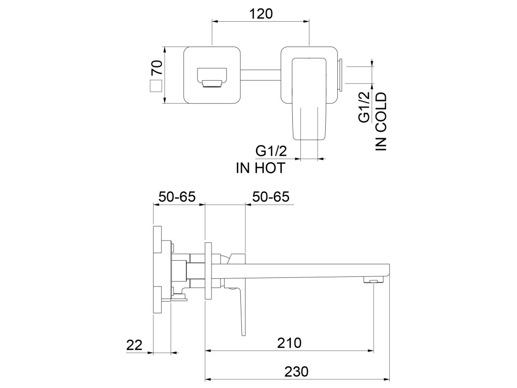 AQUALINE 35 nástěnná baterie, lékařská páka, ramínko ploché zvýšené, 220mm, chrom