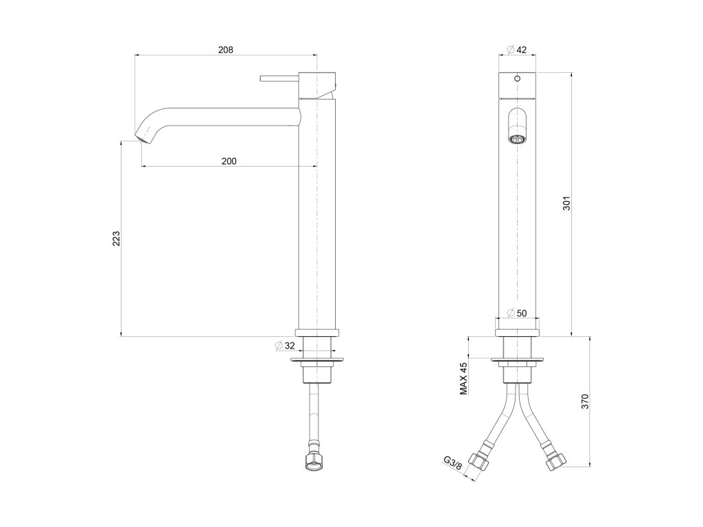 ULTRAMIX stojánková umyvadlová baterie vysoká, prodloužená hubice, černá mat/chrom