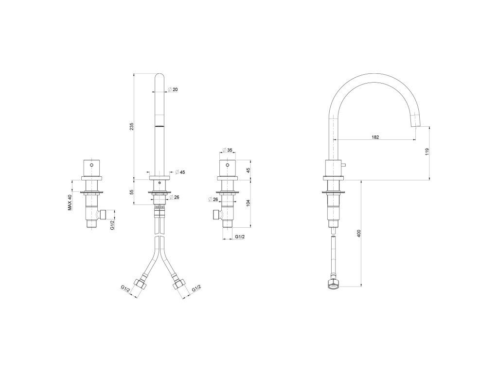 AQUALINE 35 nástěnná baterie, lékařská páka, ramínko ploché zvýšené, 220mm, chrom