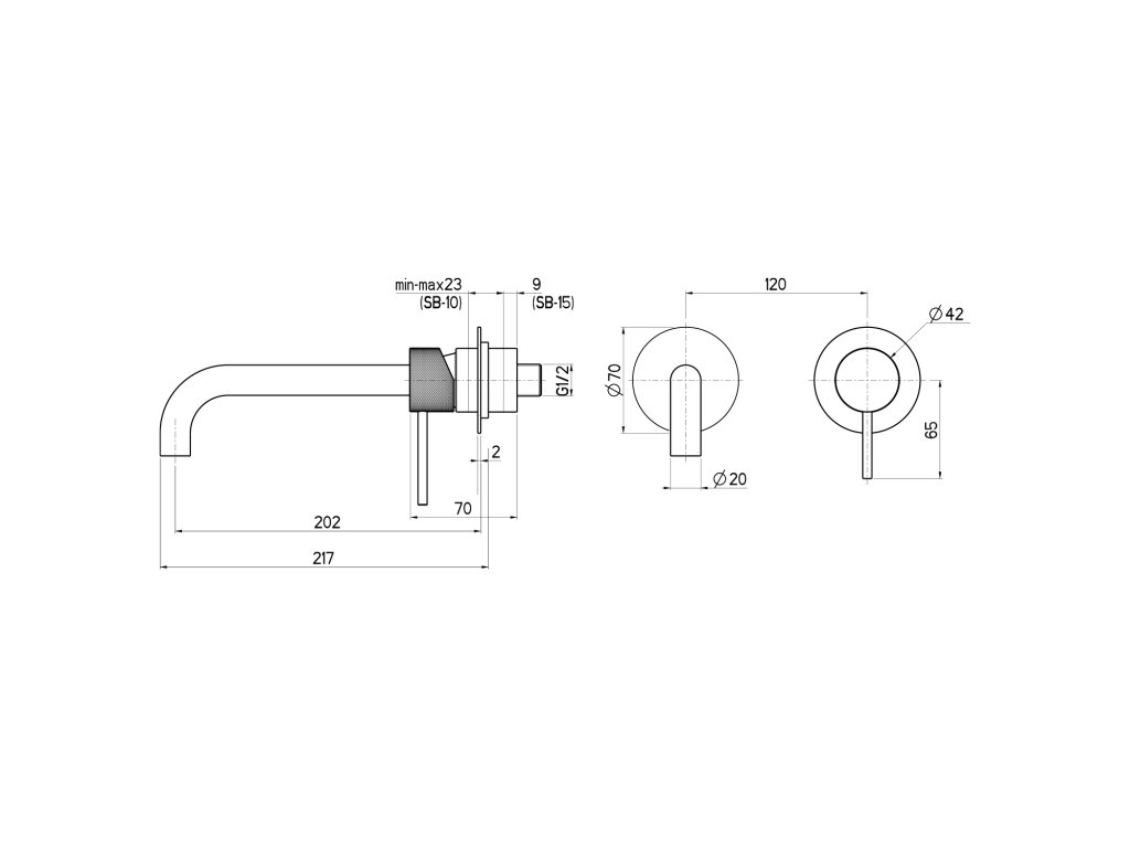 AQUALINE 35 nástěnná baterie, lékařská páka, ramínko S, 177mm, chrom