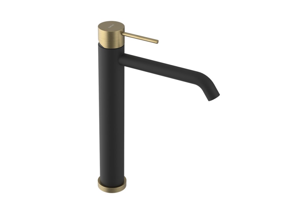 ULTRASAN stojánková umyvadlová baterie vysoká, prodloužená hubice, černá mat/zlato mat