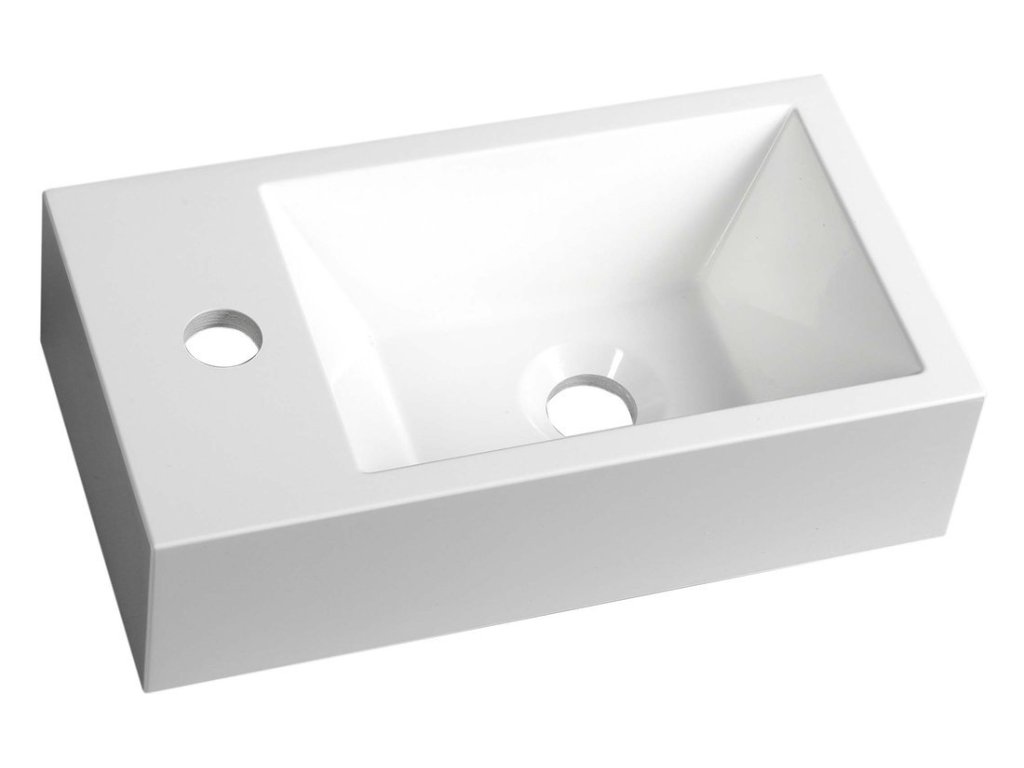 AMAROK umývátko, litý mramor, 40x22cm, baterie vlevo, bílá
