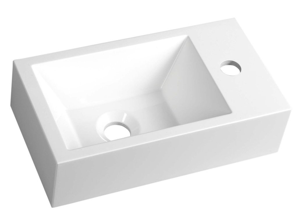 AMAROK umývátko, litý mramor, 40x22cm, baterie vpravo, bílá