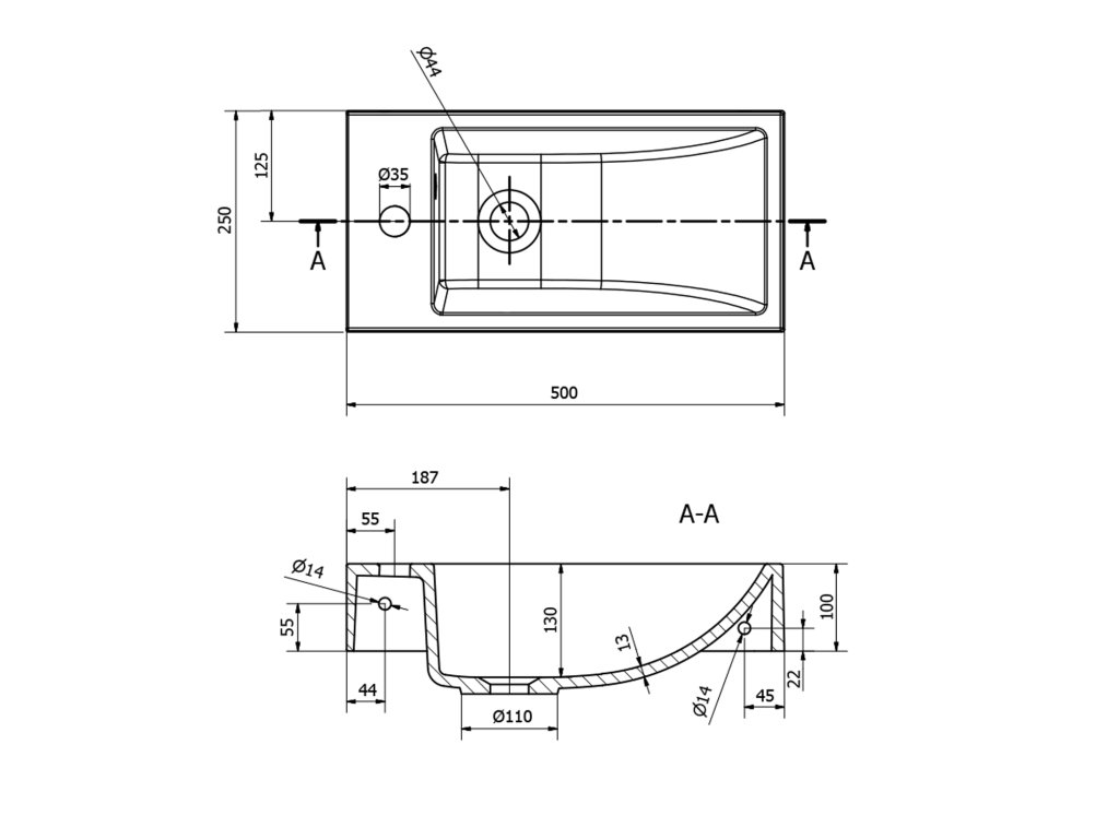 ARIANA umývátko, litý mramor, 50x25cm, baterie vlevo, černá mat