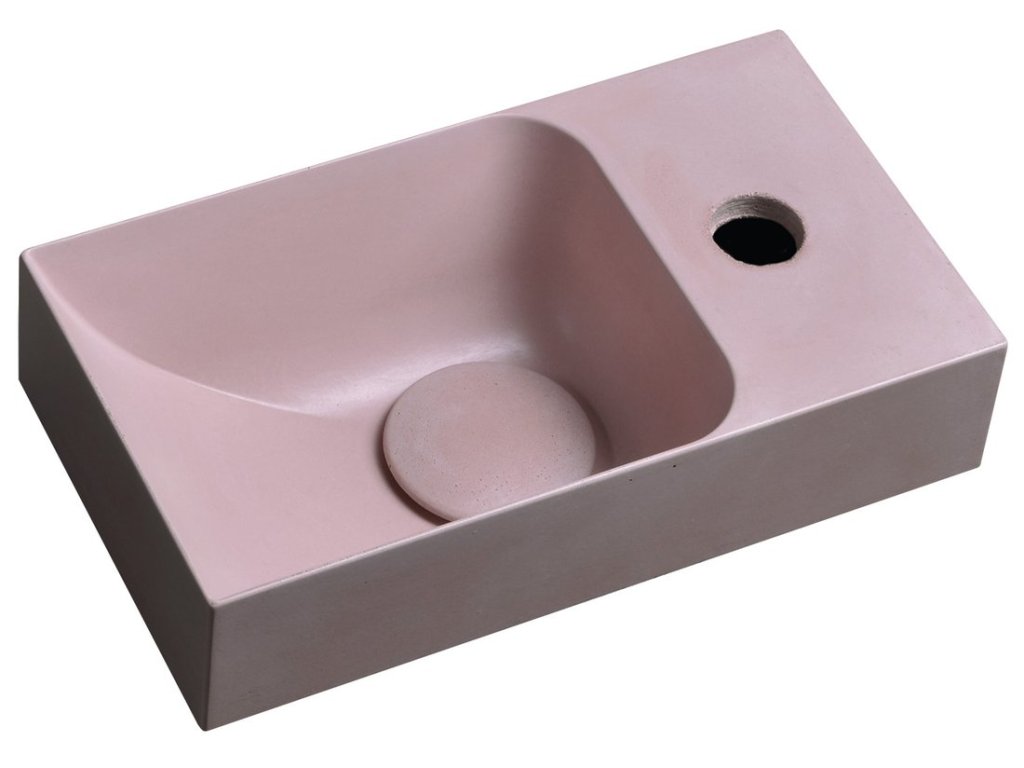 PICCOLINO betonové umývátko 30,8x17cm, baterie vpravo, růžová mat