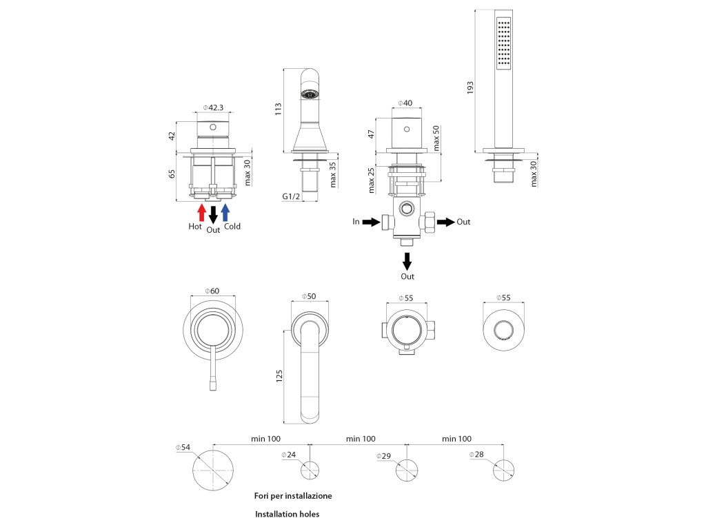 ANTEA připojení pro instalaci vanové baterie na okraj vany (pár), chrom