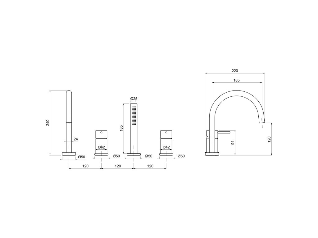 TURSI čtyřprvková baterie na okraj vany, černá mat