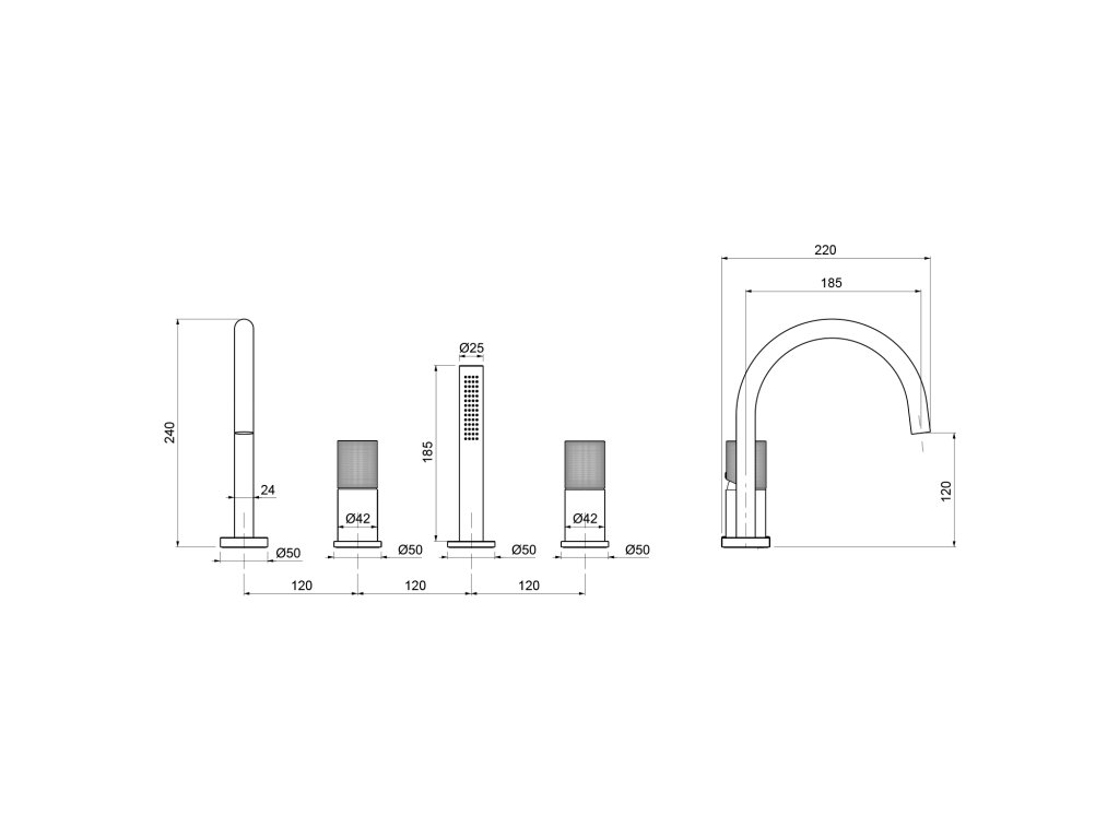 TURSI čtyřprvková baterie na okraj vany, černá mat