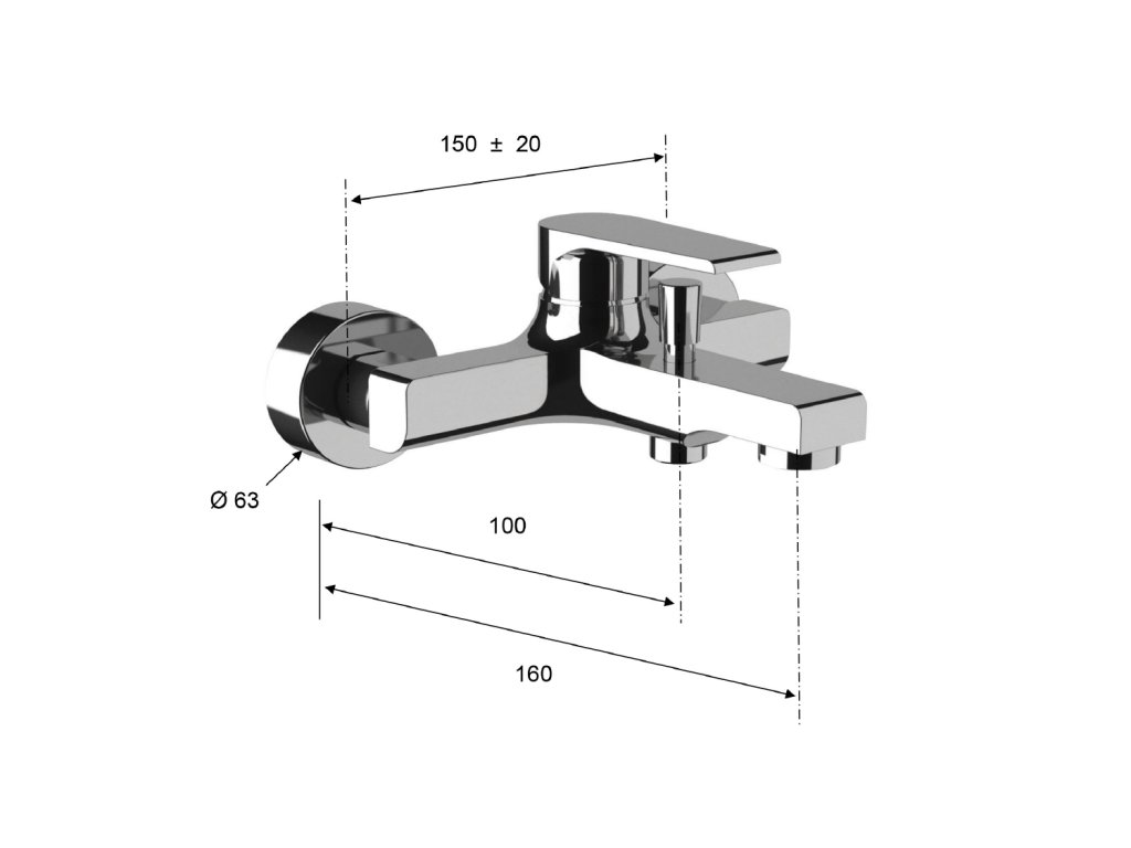 PAX nástěnná vanová baterie, otočné ramínko, chrom