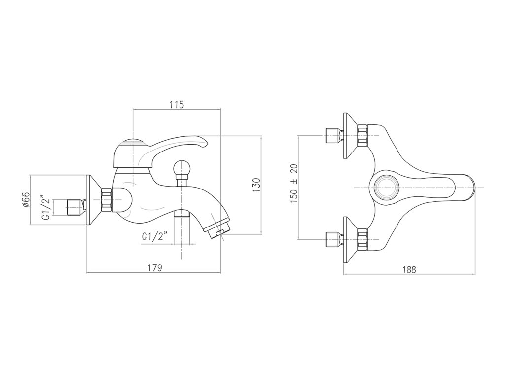 FLERY nástěnná vanová/sprchová baterie, otočné ramínko, gun metal