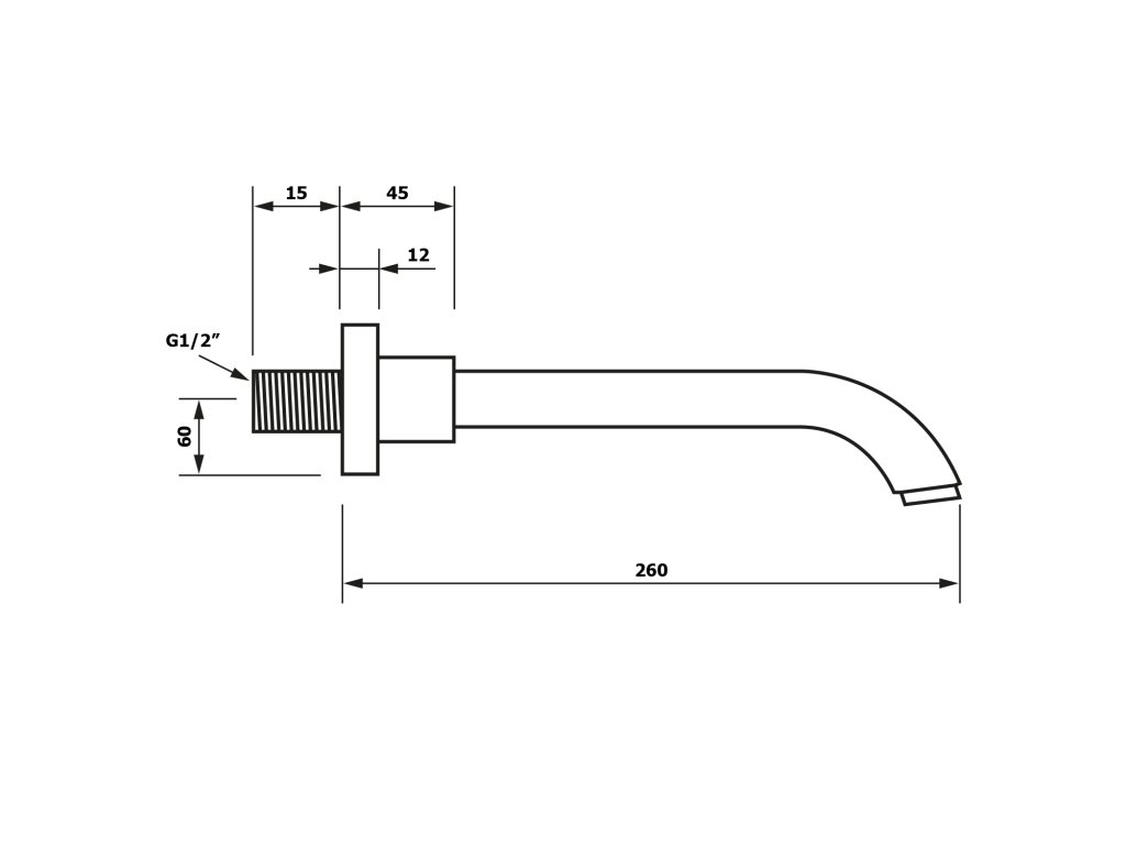 Nástěnná výtoková hubice, hranatá, 160mm, černá mat