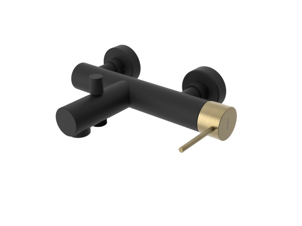 KIRKÉ BLACK nástěnná vanová baterie, černá páčka, bronz