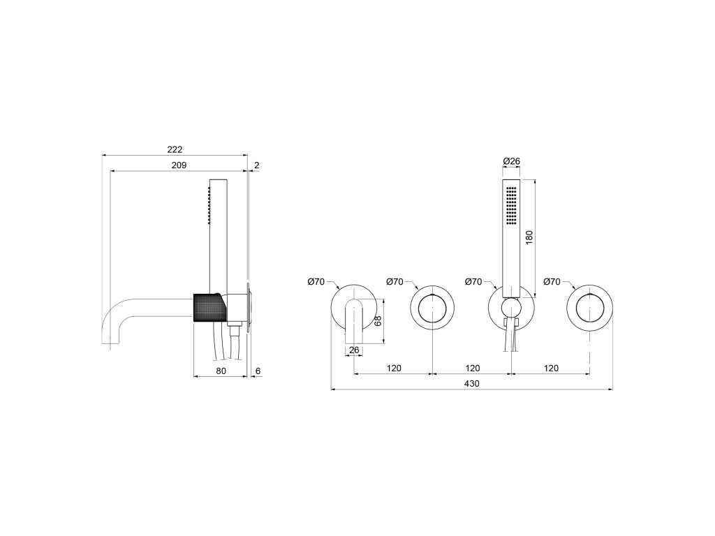 ULTRATAP podomítková vanová baterie s hubicí a ruční sprchou, 2 výstupy, černá mat