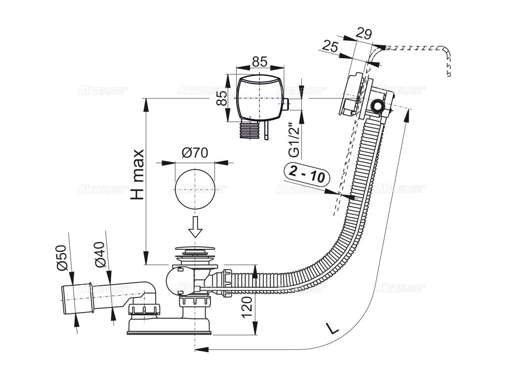 AlcaPlast Sifon vanový automat s napouštěním přepadem, chrom, A564CRM1