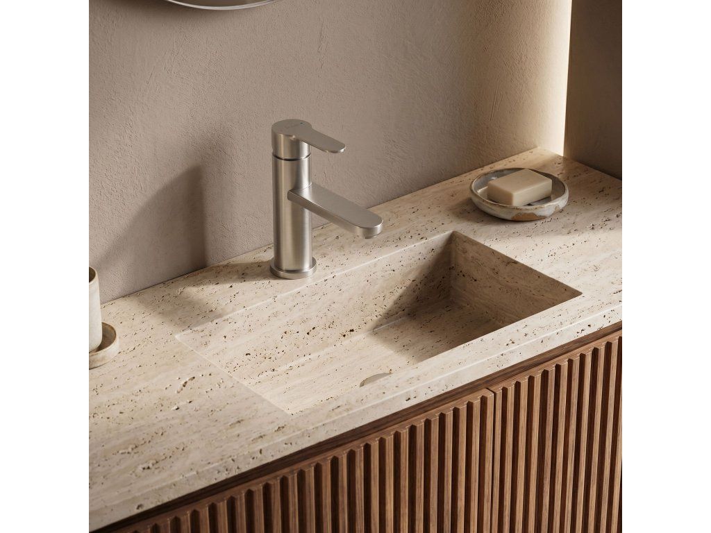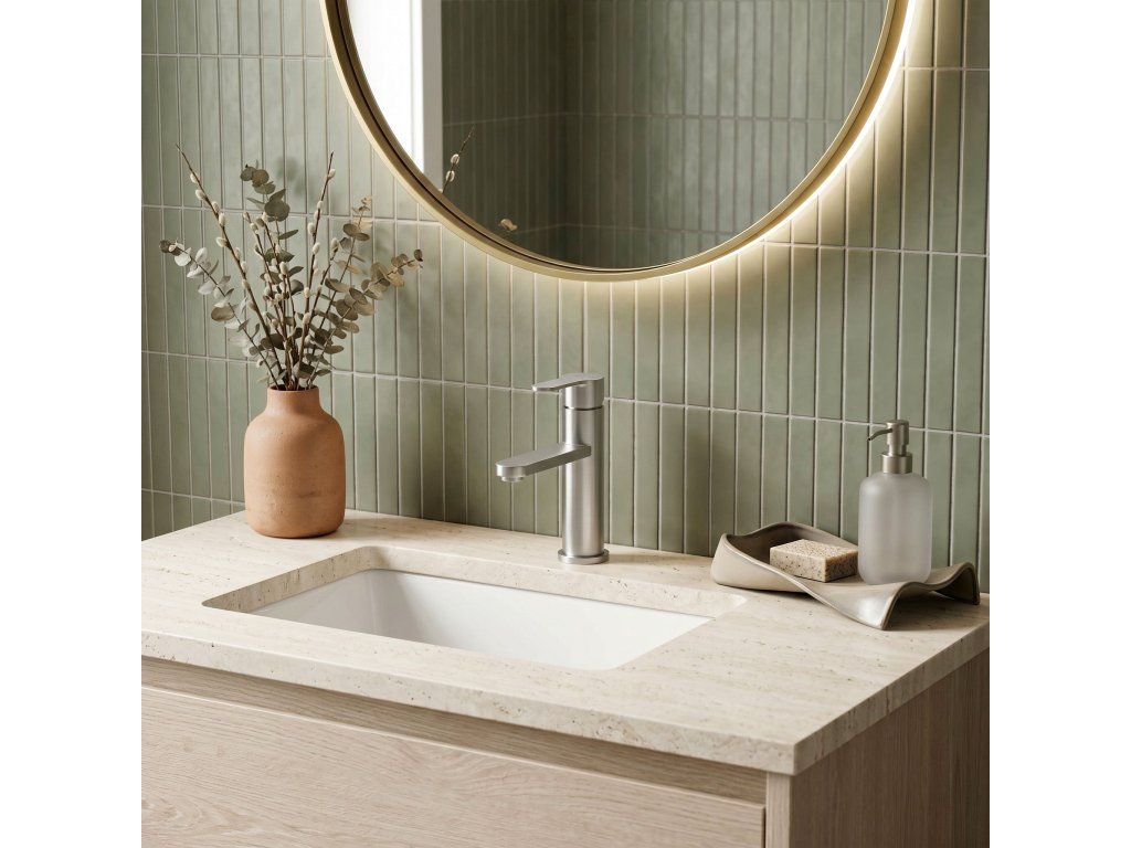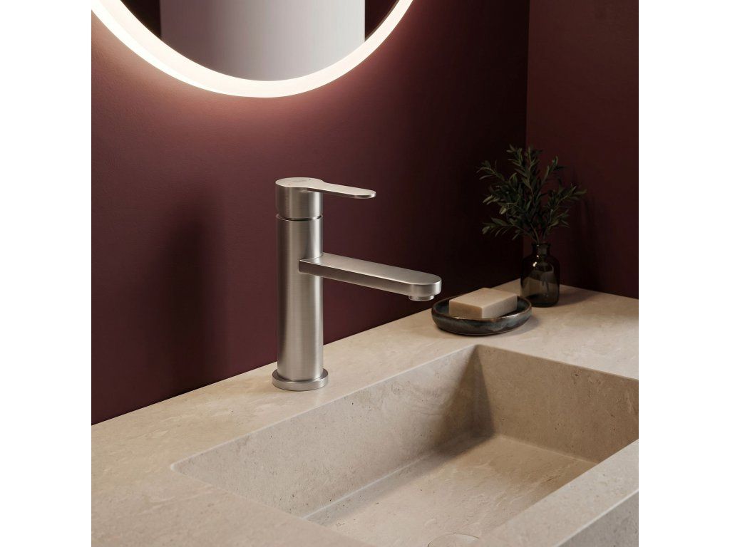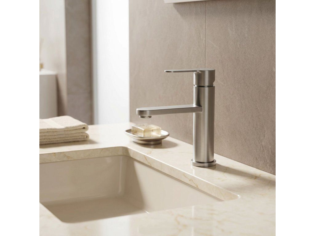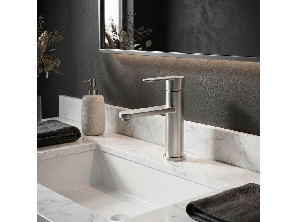 Nízká umyvadlová baterie Arcos v barvě Brushed Nickel je elegantní a funkční řešení, které se dokonale hodí do výzdoby moderních koupelen. Díky své propracované formě je tento model stylovým akcentem spojujícím estetiku s nejvyšší kvalitou zpracování.Povrchová úprava Brushed Nickel (PVD) – technologicky vyspělý PVD povlak poskytuje výjimečnou odolnost proti poškrábání a korozi. Ušlechtilý, saténový odstín v kartáčovaném provedení je velmi praktický, protože účinně snižuje viditelnost skvrn od vody a otisků prstů.Nízká konstrukce – model se dokonale hodí k umyvadlům pod desku a k těm s továrním otvorem pro armaturu. Optimální výška zajišťuje, že proud vody dopadá přesně do mísy, což minimalizuje rozstřikování a poskytuje pohodlí při každodenní hygieně.Pevné mosazné tělo – vyrobeno z vysoce kvalitní mosazi, zaručuje plnou stabilitu konstrukce a dlouholetou životnost produktu.Keramická kartuše – použití špičkové keramické kartuše umožňuje plynulou a přesnou regulaci proudu a teploty vody, což zajišťuje bezporuchové používání.Elegantní linie – štíhlý válcový tvar v kombinaci s moderní a ergonomickou rukojetí zajišťuje, že model Arcos dokonale ladí s minimalistickou koupelnovou architekturou.Výběrem nízké baterie Arcos v barvě Brushed Nickel získáte spolehlivou armaturu, která si díky odolnému PVD povlaku zachová svůj estetický a moderní vzhled po mnoho let.