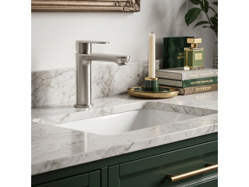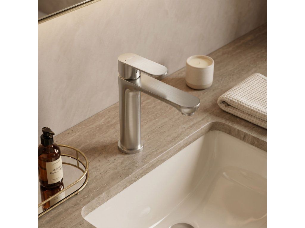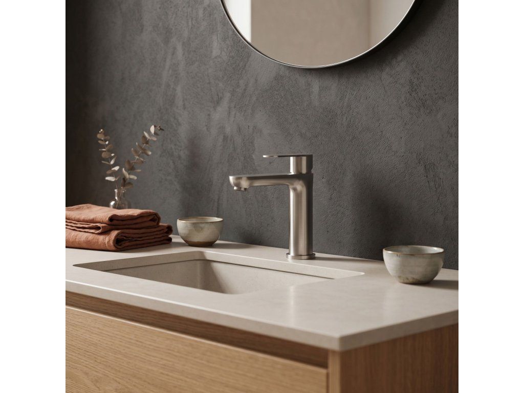 Nízká umyvadlová baterie Logan v barvě Brushed Nickel je spojením jednoduché formy s vysokou funkčností. Díky nízké konstrukci je to ideální model pro umyvadla zapuštěná do desky, umyvadla pod desku a umyvadla s továrním otvorem pro baterii.Povrchová úprava Brushed Nickel (PVD) – technologicky vyspělý PVD povlak zajišťuje výjimečnou odolnost proti poškrábání a vnějším faktorům. Saténový, kartáčovaný odstín je velmi praktický – účinně maskuje skvrny od vody a otisky prstů.Pevné mosazné tělo – vyrobeno z vysoce kvalitní mosazi zaručuje trvanlivost, stabilitu a plnou odolnost proti korozi po léta používání.Keramická kartuše – vnitřek baterie je vybaven špičkovou keramickou kartuší, což se promítá do plynulé a přesné regulace proudu a teploty vody.Ergonomický design – plochá, pohodlná rukojeť a správně profilovaný výtok zajišťují pohodlné každodenní používání a zároveň udržují moderní vzhled mycí zóny.Výběrem baterie Logan Brushed Nickel získáte spolehlivý koupelnový prvek, který si díky odolnému PVD povlaku a pevným materiálům zachová svůj vzhled a účinnost po dlouhou dobu.