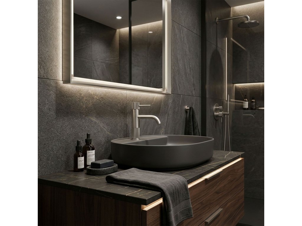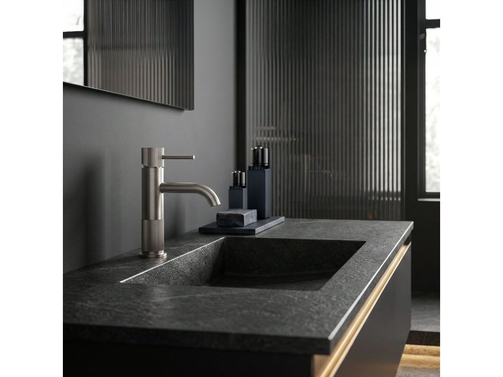 Objevte novou definici luxusu ve své koupelně díky umyvadlové baterii Rea Lungo Stripe. Tato nízká baterie je skutečným mistrovským dílem designu, které spojuje minimalistickou formu s mimořádně efektními detaily. Její jedinečná estetika z ní dělá centrální prvek každé moderní aranžace a dodává interiéru prestiž i vytříbený charakter.Dekorativní rýhování – výrazná, žebrovaná textura na těle a páce přitahuje pozornost a dodává baterii unikátní „šperkový“ vzhledTechnologie povlaku PVD – zaručuje bezchybnou hladkost a extrémní odolnost proti poškrábání i vnějším vlivůmKartáčovaný povrch – elegantní matná úprava jemně rozptyluje světlo a velmi snadno se udržuje čistá bez otisků prstůProvedení z mosazi – materiál nejvyšší kvality zajišťuje dlouhou životnost, těsnost a spolehlivost celé konstrukceDesignový tvar – štíhlé linie a propracované proporce se skvěle hodí k moderním umyvadlům na desku s místem pro baterii i k praktickým poddeskovým umyvadlům