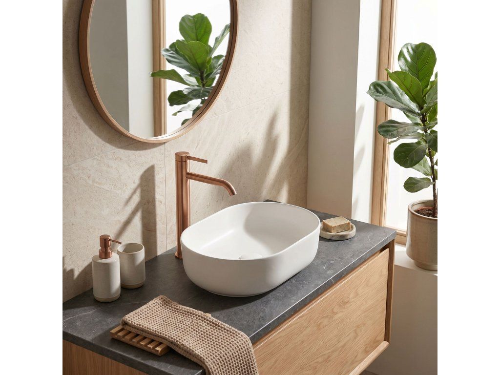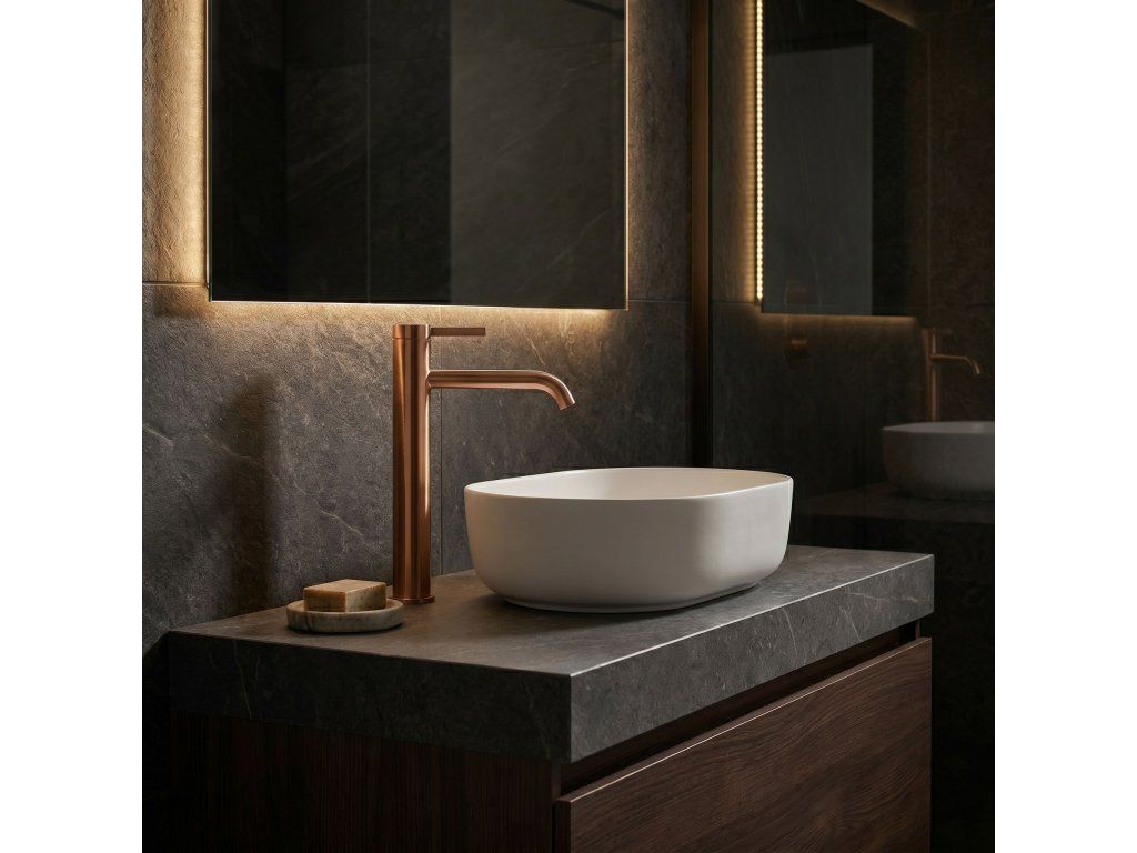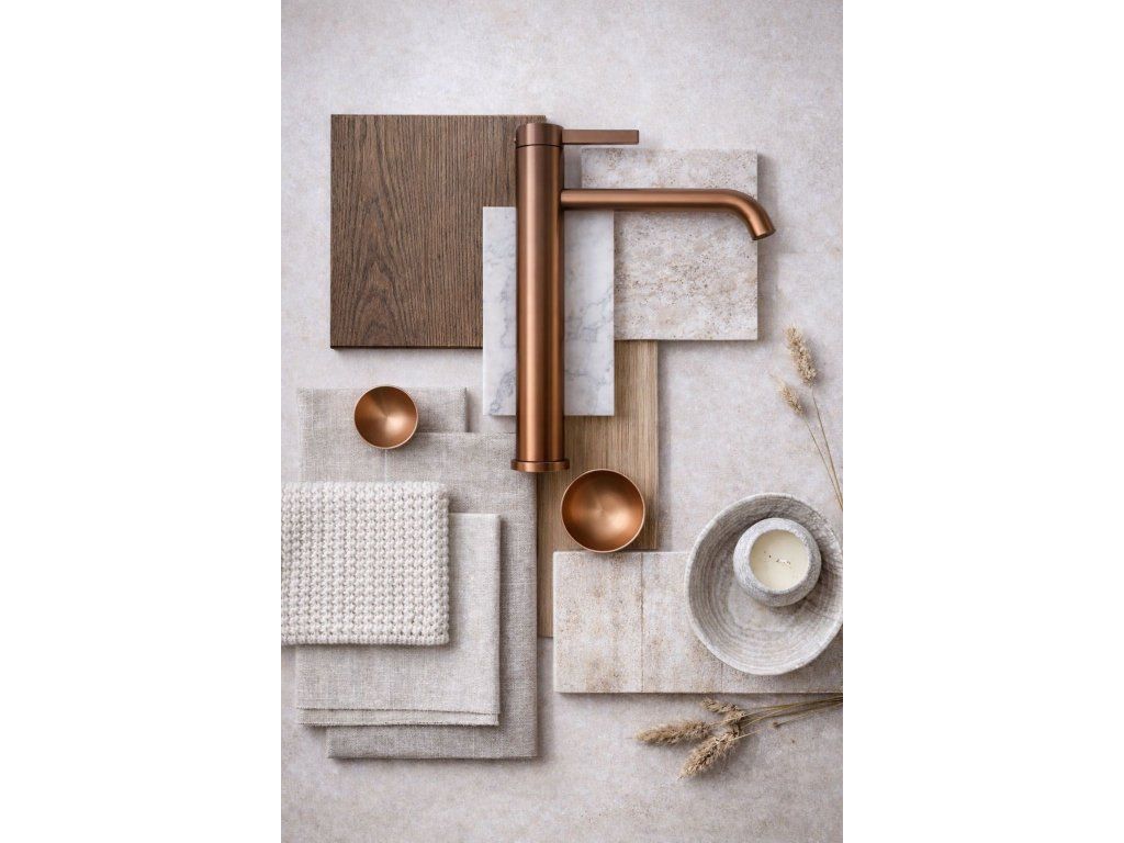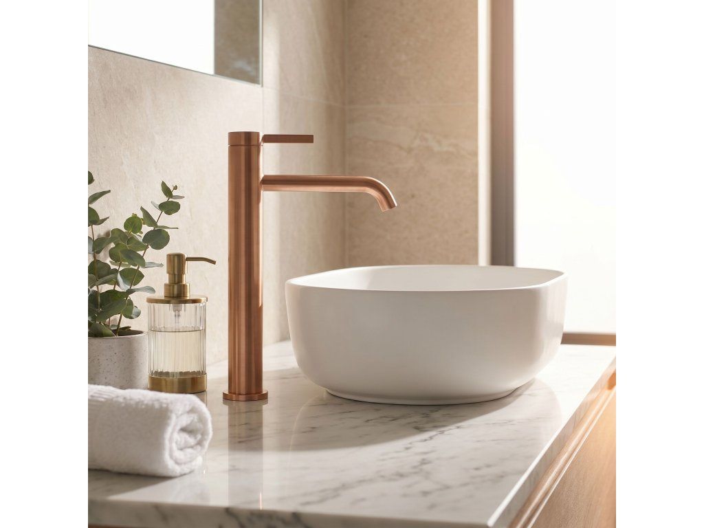 Vneste do své koupelny teplý, designový akcent díky vysoké umyvadlové baterii Rea Rivo v povrchové úpravě Brushed Copper. Tento štíhlý model byl navržen pro moderní umyvadla na desku, kde záleží jak na komfortu používání, tak na výrazném stylu celého aranžmá. Válcové tělo, zaoblený výtok a minimalistická rukojeť tvoří ucelenou formu, která skvěle zapadá do aktuálních trendů v interiérovém designu.Vysoká konstrukce – zajišťuje pohodlí při používání a ideálně ladí s umyvadly na desku.Barva Brushed Copper – teplý, saténový povrch s jemnou strukturou zdůrazňuje eleganci interiéru.Zaoblený výtok – moderní forma zajišťuje estetiku a komfort používání.Perlátor – provzdušňuje proud vody, čímž zvyšuje komfort a podporuje úsporu.Páková baterie – rychlá a intuitivní regulace teploty a proudu.Vysoká umyvadlová baterie Rea Rivo Brushed Copper je ideálním spojením stylu a funkčnosti. Teplý odstín mědi vnáší do koupelny výjimečnou atmosféru a štíhlá forma působí u umyvadla na desku dokonale.