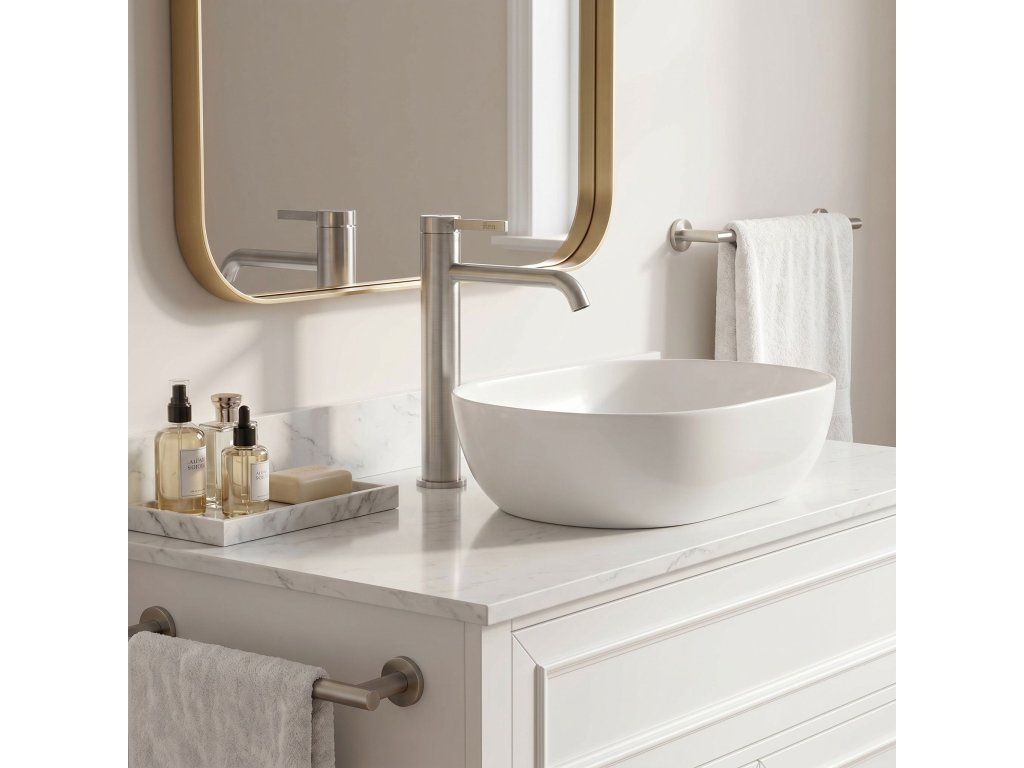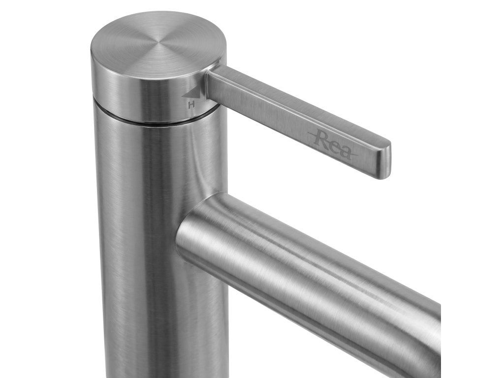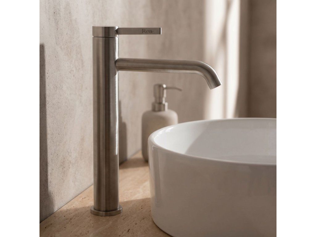 Dodejte umyvadlové zóně surový, a přitom elegantní a propracovaný akcent s vysokou umyvadlovou baterií Rea Rivo v povrchové úpravě Brushed Nickel. Tento štíhlý, vysoký model byl vytvořen pro moderní umyvadla na desku, kde záleží nejen na pohodlí při používání, ale také na uceleném a estetickém vzhledu celého aranžmá. Válcové tělo, jemně zaoblený výtok a minimalistická rukojeť dodávají baterii moderní charakter, který se skvěle hodí jak do surových, industriálních interiérů, tak do elegantnějších návrhů koupelen.Vysoká konstrukce – vyvýšené tělo zajišťuje pohodlné používání a dobře ladí s umyvadly na desku s vyšší mísou.Barva Brushed Nickel – jasně kovový povrch se silně zdůrazněnou, surovou strukturou kartáčování, zdůrazňuje moderní styl interiéru a pomáhá udržet estetický efekt každý den.Zaoblený výtok – jemně tvarovaná forma působí lehce a moderně a zároveň se dobře doplňuje s měkkými liniemi koupelnové keramiky.Perlátor – provzdušňuje proud vody, což zvyšuje komfort každodenného používání a podporuje hospodárnější spotřebu vody.Páková baterie – pohodlné ovládání jednou rukou umožňuje rychle a přesně nastavit teplotu a intenzitu proudu.Vysoká umyvadlová baterie Rea Rivo Brushed Nickel je návrh pro lidi, kteří hledají spojení moderní jednoduchosti se surovou, industriální povrchovou úpravou. Štíhlá silueta působí u umyvadla na desku efektně a Brushed Nickel vnáší do umyvadlové zóny kovový a ušlechtilý akcent s jasně viditelnou texturou. Je to model, který pomáhá vytvořit funkční, soudržný a stylový koupelnový prostor.