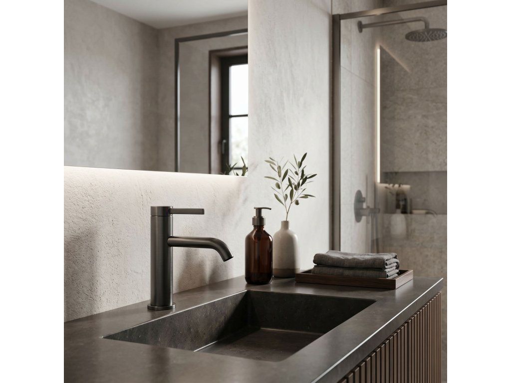 Vneste do své koupelny ucelený a elegantní akcent díky nízké umyvadlové baterii Rea Rivo v povrchové úpravě Titanium. Tento kompaktní model byl navržen pro klasická umyvadla, kde záleží na pohodlí každodenního používání a propracovaném vzhledu celé umyvadlové zóny. Válcové tělo, jemně zaoblený výtok a minimalistická rukojeť tvoří moderní, lehkou formu, která skvěle zapadá jak do surových, industriálních interiérů, tak do elegantnějších aranžmá.Nízká konstrukce – optimální výška baterie zajišťuje pohodlné používání u standardních umyvadel a dobře se přizpůsobí klasickým montážním řešením.Barva Titanium – výrazný povrch nanesený technologií PVD dodává baterii elegantní vzhled, zaručuje nejvyšší odolnost povlaku, odolnost proti poškrábání a usnadňuje udržení estetiky každý den.Zaoblený výtok – jemně tvarovaná forma působí moderně a harmonicky se doplňuje s koupelnovou keramikou.Perlátor – provzdušňuje proud vody, čímž zvyšuje komfort používání a podporuje hospodárnější spotřebu vody.Páková baterie – intuitivní ovládání jednou rukou umožňuje rychle nastavit požadovanou teplotu a intenzitu proudu.Nízká umyvadlová baterie Rea Rivo Titanium je vynikající volbou pro lidi, kteří hledají funkční a estetická řešení pro každodenní použití. Její kompaktní forma vypadá u umyvadla skvěle a PVD povlak Titanium dodává interiéru výrazný a nadčasový akcent. Je to model, který vám umožní vytvořit ucelený, moderní a pohodlný koupelnový prostor.