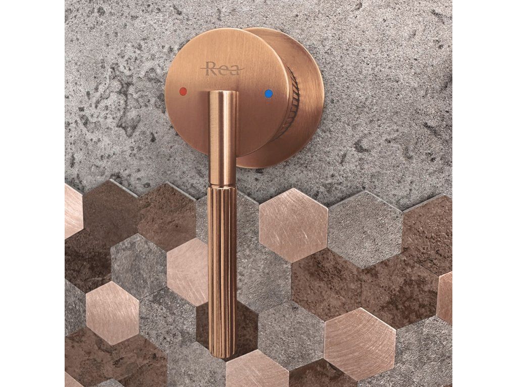Podomítková umyvadlová baterie Argon je moderní řešení pro koupelny, kde je důležitá jak estetika, tak funkčnost. Rýhovaná páčka a povrch v barvě kartáčované mědi dodávají baterii elegantní charakter, zatímco podomítková instalace zachovává minimalistický a uspořádaný vzhled umyvadlové zóny.