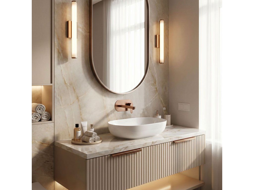 Vneste do své koupelny závan modernosti a luxusu výběrem podomítkové umyvadlové baterie Arcos se saténovou broušenou strukturou. Je to ideální řešení pro osoby hledající minimalistický design, který šetří místo na desce a dodává interiéru prestižní vzhled. Díky povrchové úpravě získané technologií PVD se baterie stává nejen užitkovým prvkem, ale skutečnou ozdobou umyvadlové zóny.Broušená struktura povrchu, která účinně maskuje stopy po vodě a otisky prstů, usnadňuje každodenní udržování čistoty.Inovativní technologie PVD, která zaručuje odolnost proti poškrábání, mechanickému poškození a korozi po dlouhá léta.Podomítková forma instalace umožňující skrytí montážních prvků ve stěně, což vytváří estetický, uspořádaný a moderní vzhled koupelny.Dlouhé ramínko zajišťující optimální dosah proudu vody a komfort při každodenních hygienických činnostech.Rychlá a snadná montáž, která díky propracované konstrukci probíhá hladce a zajišťuje plnou stabilitu celé podomítkové soupravy.