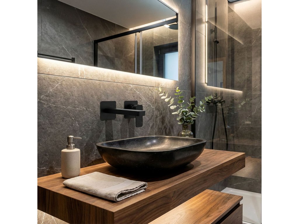 Proměňte svůj interiér a vsaďte na vytříbený styl výběrem podomítkové umyvadlové baterie Rea Arlo v módním provedení matná černá. Tento model je kvintesencí moderního minimalismu, který se skvěle hodí do loftových a modernistických aranžmá. Podomítková montáž – úspora místa a estetický, skrytý instalační systém.Technologie Electroplating – metoda nanášení barvy zaručuje hladký, matný povrch odolný vůči poškození. Vysoce kvalitní mosaz – záruka pevnosti a dlouhé životnosti těla baterie.Keramická kartuše – plynulá regulace proudu vody a spolehlivý chod mechanismu po dlouhá léta.Perlátor – nižší spotřeba vody a měkký proud, který nestříká.