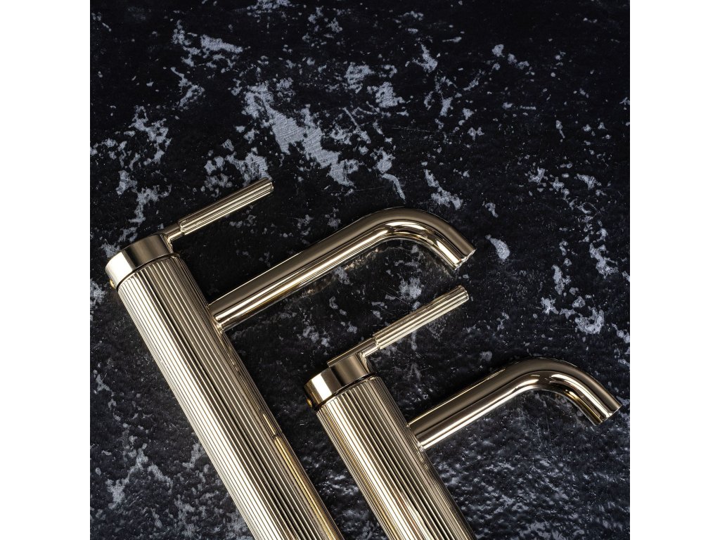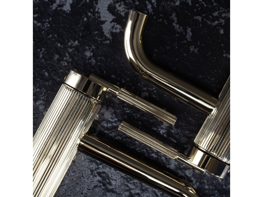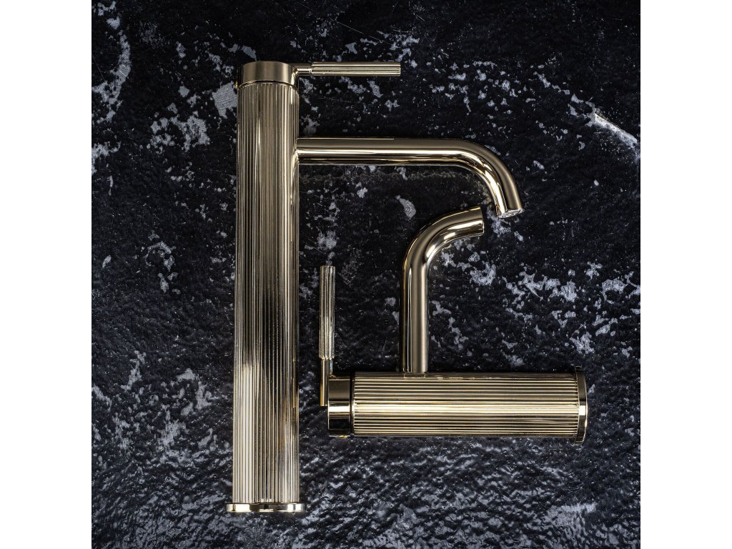 Dokonale navržená a neobyčejná svými tvary baterie je vyrobena z vysoce kvalitní mosazi s úpravou ve zlatém provedení. Lakování baterie bylo provedeno celkem ve třech vrstvách, díky čemuž je odolná vůči korozi a ztrátě barvy.