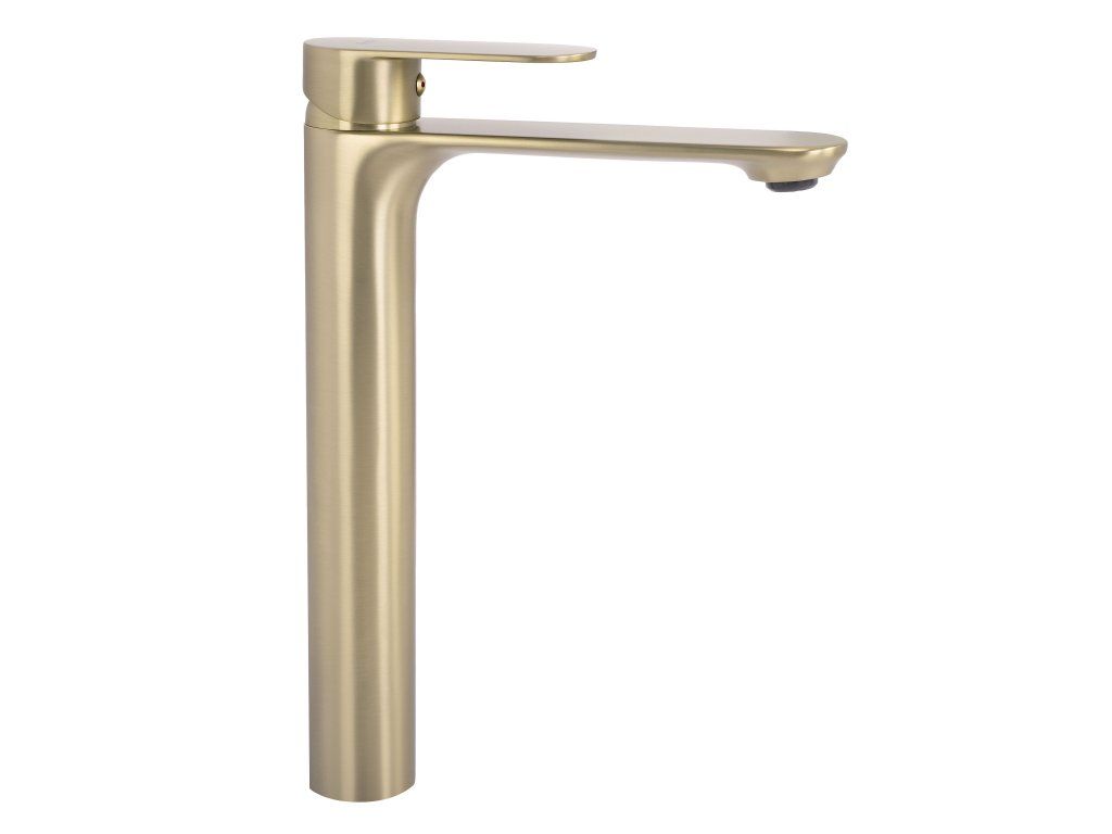 Umyvadlová baterie Drop v kartáčovaném zlatém provedení je určena pro ty, kteří oceňují eleganci a moderní styl v koupelně. Její geometrický tvar a jemná povrchová úprava v kartáčovaném zlatě ji činí ideální jak do klasických, tak designových interiérů.