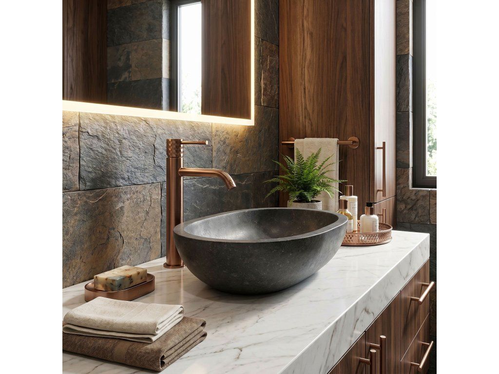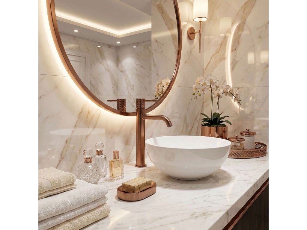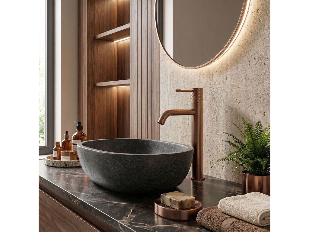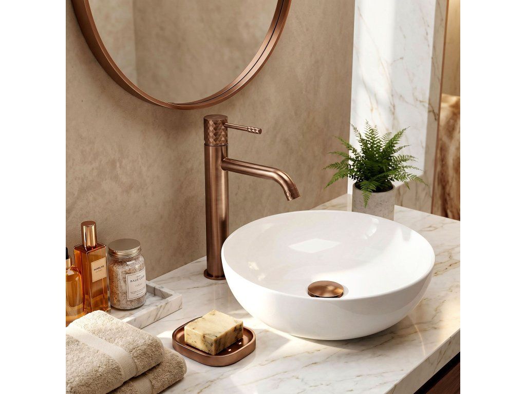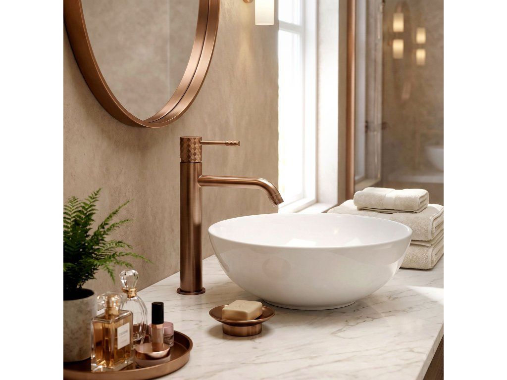 Umyvadlová baterie Rea Lungo Diamond Brush Copper vysoká
