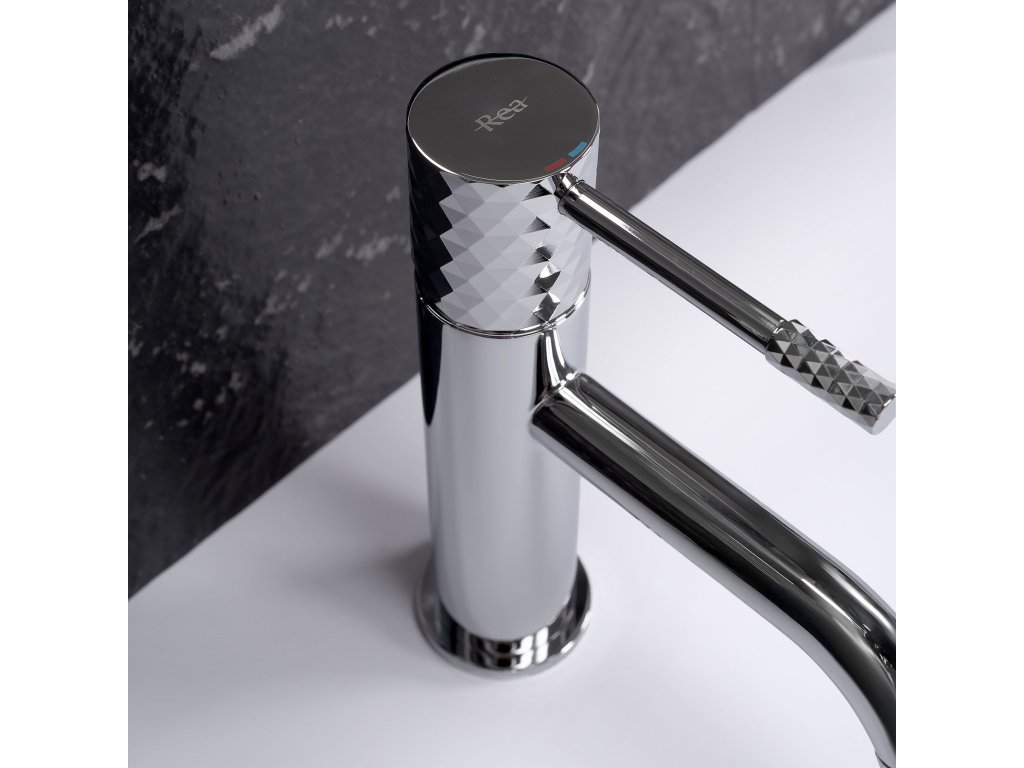 Dokonale designovaná a díky nezvyklým tvarům nízká umyvadlová baterie série Rea Lungo je baterie vyrobena z vysoce kvalitní mosazi s úpravou v chromovém provedení. Lakování baterie bylo provedeno celkem ve třech vrstvách a díky tomu je odolná vůči korozi a ztrátě barvy.