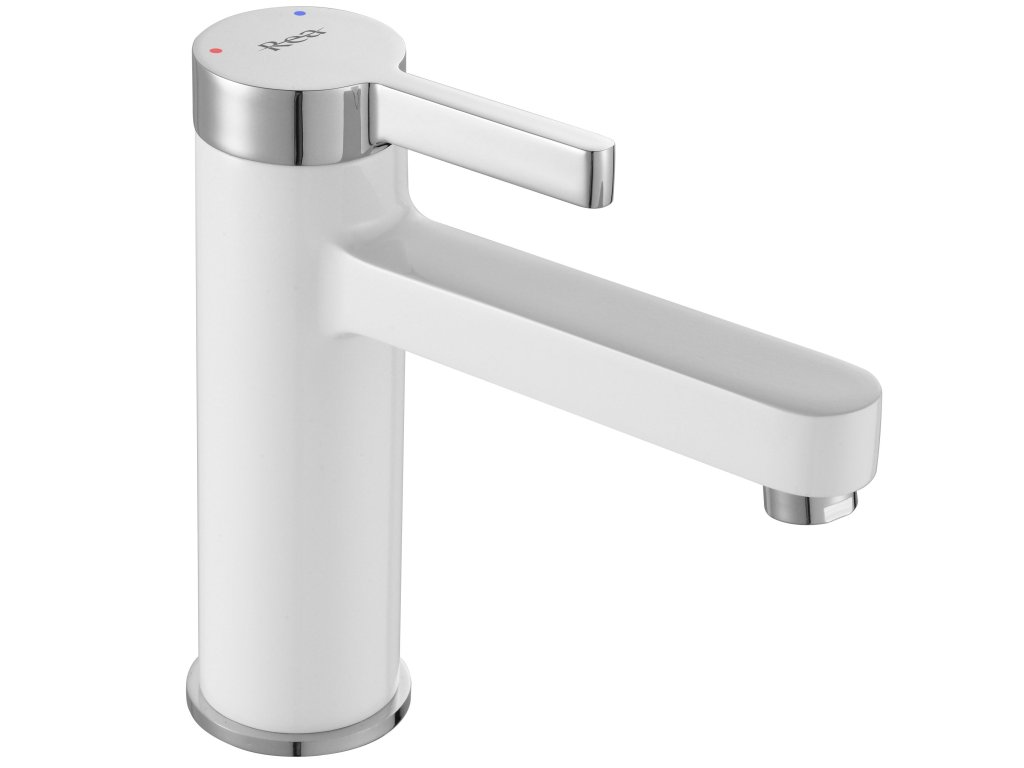 Moderní nízká umyvadlová baterie série Rea Polo je vyrobena z vysoce kvalitní mosazi s úpravou v bílém matném a chromovém provedení. Lakování baterie bylo provedeno celkem ve třech vrstvách.