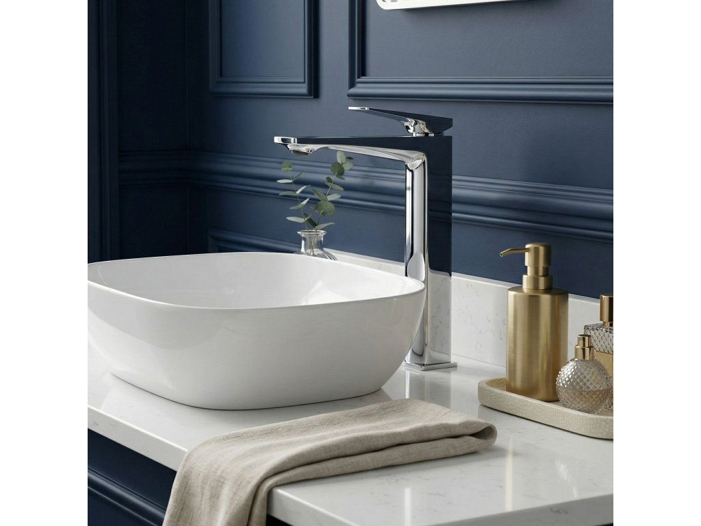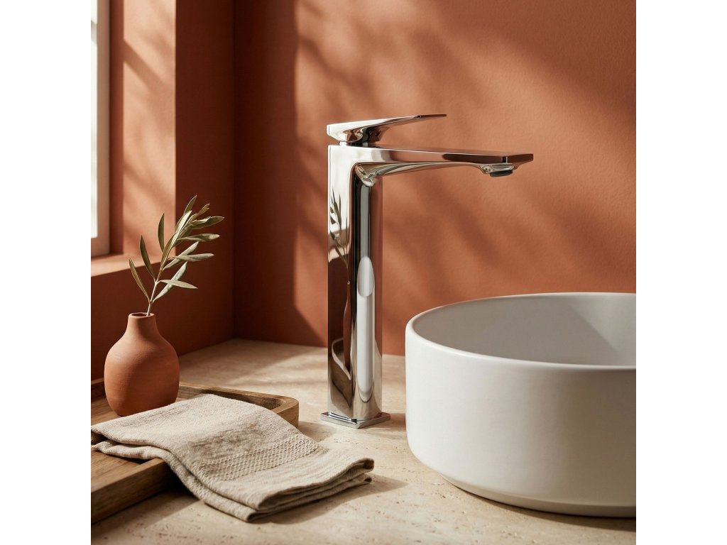 Umyvadlová baterie na desku Prime v barvě chrom je moderním řešením pro ty, kteří oceňují výrazné, geometrické formy v koupelně. Její štíhlé tělo a plochý výtok způsobují, že tato armatura dokonale zapadá do minimalistických a modernistických aranžmá.Klasická chromová povrchová úprava (Electroplating) – lesklý, stříbřitý povrch nanášený pokročilou metodou galvanizace zajišťuje vysokou odolnost proti poškrábání, zrcadlový lesk a snadné udržování bezchybné čistoty.Geometrický design – moderní tvar založený na ostrých liniích a pravých úhlech dodává umyvadlové zóně výrazný, architektonický charakter.Vysoká konstrukce – zvýšené tělo bylo navrženo s ohledem na kombinaci s umyvadly umístěnými na desce, čímž zajišťuje odpovídající prostor a komfort při mytí rukou.Masivní mosazné tělo – provedení z vysoce kvalitní mosazi zaručuje mimořádnou trvanlivost, stabilitu a plnou odolnost armatury proti korozi po mnoho let.Keramická kartuše – spolehlivý mechanismus umožňuje plynulou a přesnou regulaci síly proudu i teploty vody.Volbou umyvadlové baterie Prime Chrom se rozhodujete pro spojení ostrého, moderního designu s vysokou užitnou hodnotou. Jde o estetický a spolehlivý prvek, který dodá vaší koupelně výrazný charakter.