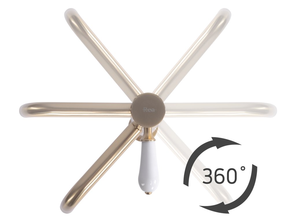 Moderní nízká umyvadlová baterie série Rea Verso je vyrobena z vysoce kvalitní mosazi s úpravou ve zlatém broušeném provedení.