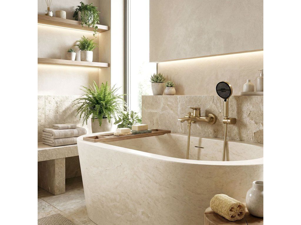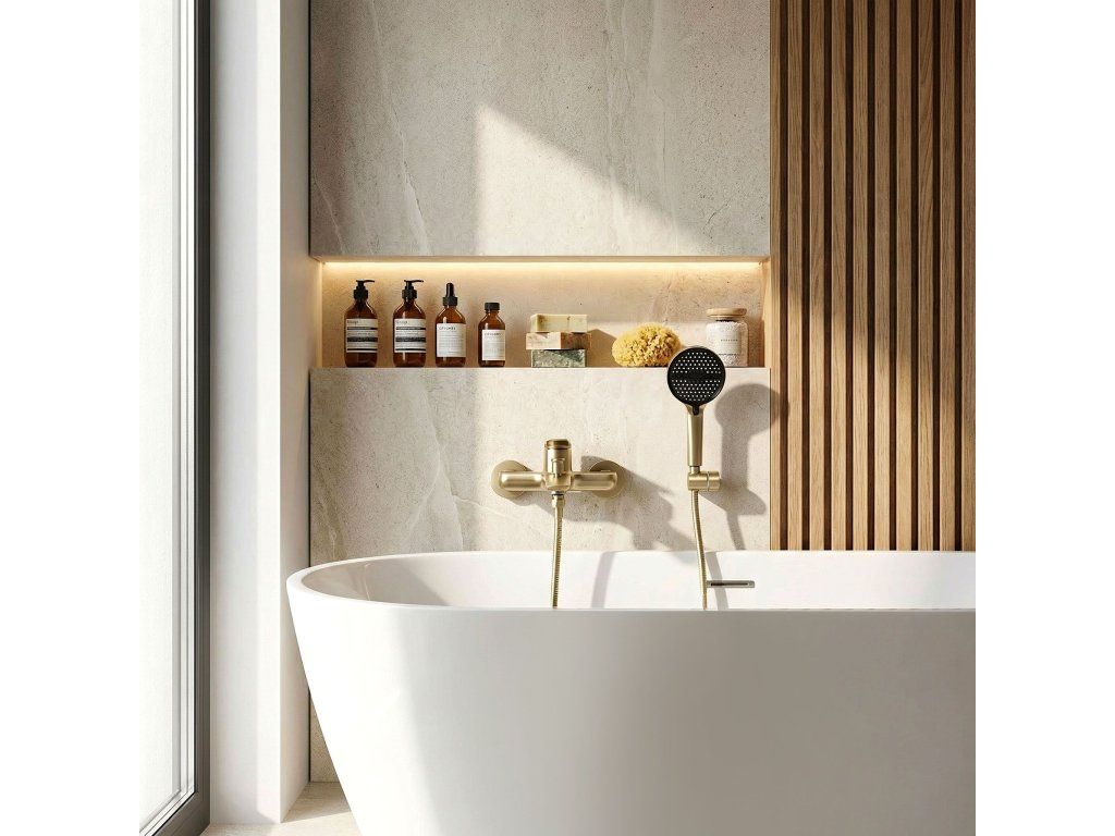 Vanová baterie Vision v broušeném provedení je elegantní volbou pro moderní a pečlivě propracované koupelny. Její štíhlá, výrazná forma, nástěnný způsob montáže a saténový broušený povrch jí dodávají lehkost a zdůrazňují moderní charakter koupací zóny. Set se sprchovou hlavicí představuje praktické a estetické řešení pro každodenní používání.Nástěnná montáž baterie – řešení, které umožňuje vytvořit uspořádanou a elegantní zónu u vany a skvěle zapadá do moderních koupelnových aranžmá.Set se sprchovou hlavicí – baterie je vybavena praktickou hlavicí s nástěnným držákem, což zvyšuje komfort používání a usnadňuje každodenní využívání vany. Hlavice nabízí standardní režimy proudu a také proud typu „bidetka“ umístěný v horní části hlavice, což výrazně usnadňuje udržování čistoty ve sprchové zóně.Broušený povrch – saténový povrch dodává armatuře nadčasový vzhled, který se skvěle hodí do elegantních koupelen.PVD povlak – zaručuje odolnost vůči mechanickému poškození, korozi a změnám barvy.Pevné tělo – odolná konstrukce zajišťuje stabilitu, odolnost při každodenním používání a estetický vzhled po dlouhou dobu.Keramická kartuše – zodpovídá za plynulou a přesnou regulaci teploty a proudu vody, což se promítá do pohodlí a spolehlivého fungování baterie.Moderní design – jemně tvarované tělo, plochý výtok a subtilně zvednutá páka dodávají baterii elegantní, designový charakter, ideální pro moderní prémiové koupelny.Volbou vanové baterie Vision získáváte spojení stylu, funkčnosti a pohodlí při používání. Je to propracovaný prvek vybavení, který efektně zvýrazňuje koupací zónu a dodává celé aranžaci moderní, stylové a elegantní zakončení.