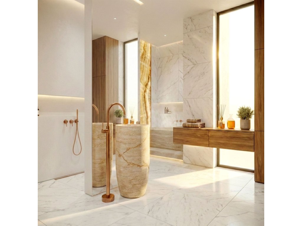 Objevte novou definici luxusu ve své mycí zóně díky podlahové umyvadlové baterii Rea Lungo. Toto mimořádně designové a funkční řešení představuje dokonalou alternativu k tradičním nástěnným či stojánkovým bateriím. Produkt byl navržen pro moderní, prostorné koupelny, kde každý detail hraje roli v konečném výsledku uspořádání.Podlahová montáž – umožňuje volné uspořádání prostoru a ideální přizpůsobení volně stojícím umyvadlům.Vysoká konstrukce – zajišťuje maximální komfort používání a volnost pohybu při každodenní hygieně.Provedení z mosazi – zaručuje dlouhou životnost, odolnost proti korozi a spolehlivý provoz.Keramická kartuše – umožňuje plynulou a přesnou regulaci proudu vody a teploty.Designový profil – štíhlá linie série Lungo dodává interiéru lehkost a podtrhuje prestižní charakter koupelny.