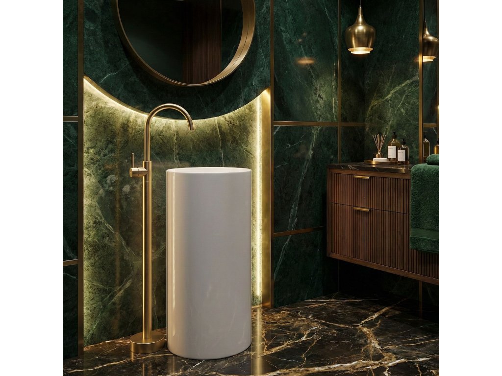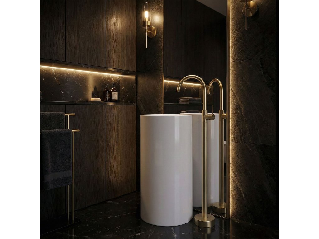 Objevte novou definici luxusu ve své mycí zóně díky podlahové umyvadlové baterii Rea Lungo. Toto mimořádně designové a funkční řešení představuje dokonalou alternativu k tradičním nástěnným či stojánkovým bateriím. Produkt byl navržen pro moderní, prostorné koupelny, kde každý detail hraje roli v konečném výsledku uspořádání.Podlahová montáž – umožňuje volné uspořádání prostoru a ideální přizpůsobení volně stojícím umyvadlům.Vysoká konstrukce – zajišťuje maximální komfort používání a volnost pohybu při každodenní hygieně.Provedení z mosazi – zaručuje dlouhou životnost, odolnost proti korozi a spolehlivý provoz.Keramická kartuše – umožňuje plynulou a přesnou regulaci proudu vody a teploty.Designový profil – štíhlá linie série Lungo dodává interiéru lehkost a podtrhuje prestižní charakter koupelny.