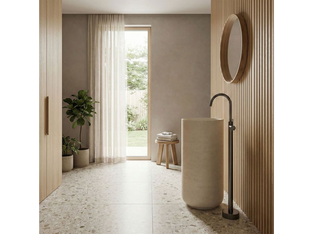 Objevte novou definici luxusu ve své mycí zóně díky podlahové umyvadlové baterii Rea Lungo. Toto mimořádně designové a funkční řešení představuje dokonalou alternativu k tradičním nástěnným či stojánkovým bateriím. Produkt byl navržen pro moderní, prostorné koupelny, kde každý detail hraje roli v konečném výsledku uspořádání.Podlahová montáž – umožňuje volné uspořádání prostoru a ideální přizpůsobení volně stojícím umyvadlům.Vysoká konstrukce – zajišťuje maximální komfort používání a volnost pohybu při každodenní hygieně.Provedení z mosazi – zaručuje dlouhou životnost, odolnost proti korozi a spolehlivý provoz.Keramická kartuše – umožňuje plynulou a přesnou regulaci proudu vody a teploty.Designový profil – štíhlá linie série Lungo dodává interiéru lehkost a podtrhuje prestižní charakter koupelny.