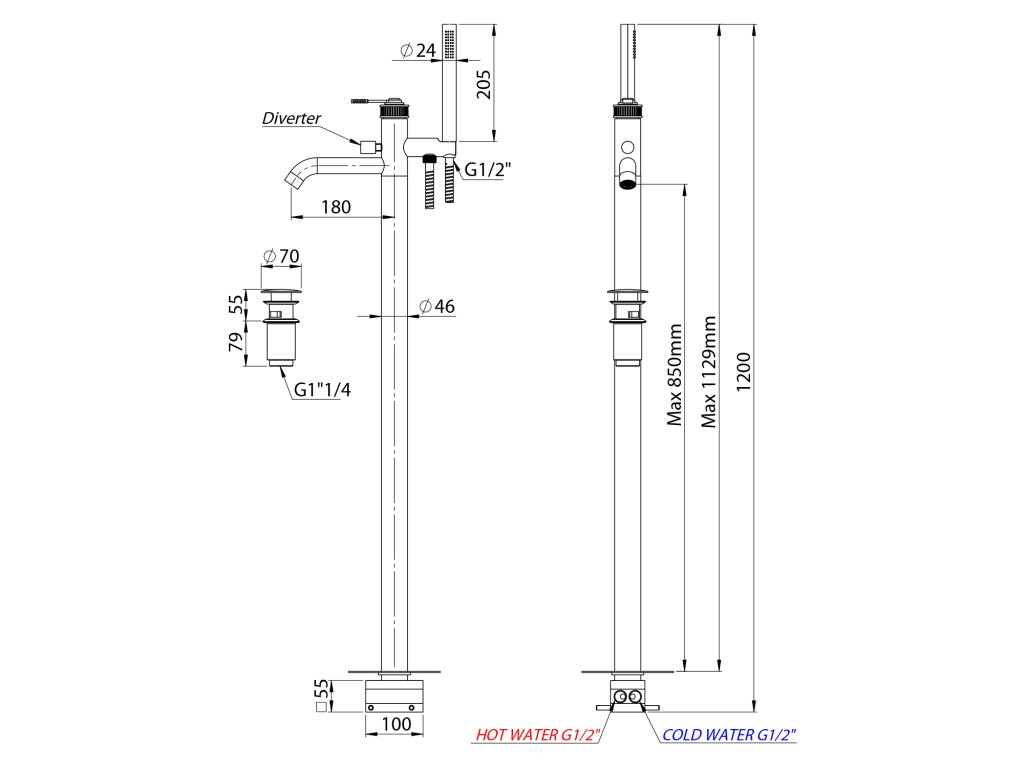 Vanová baterie s připojením do podlahy, chrom