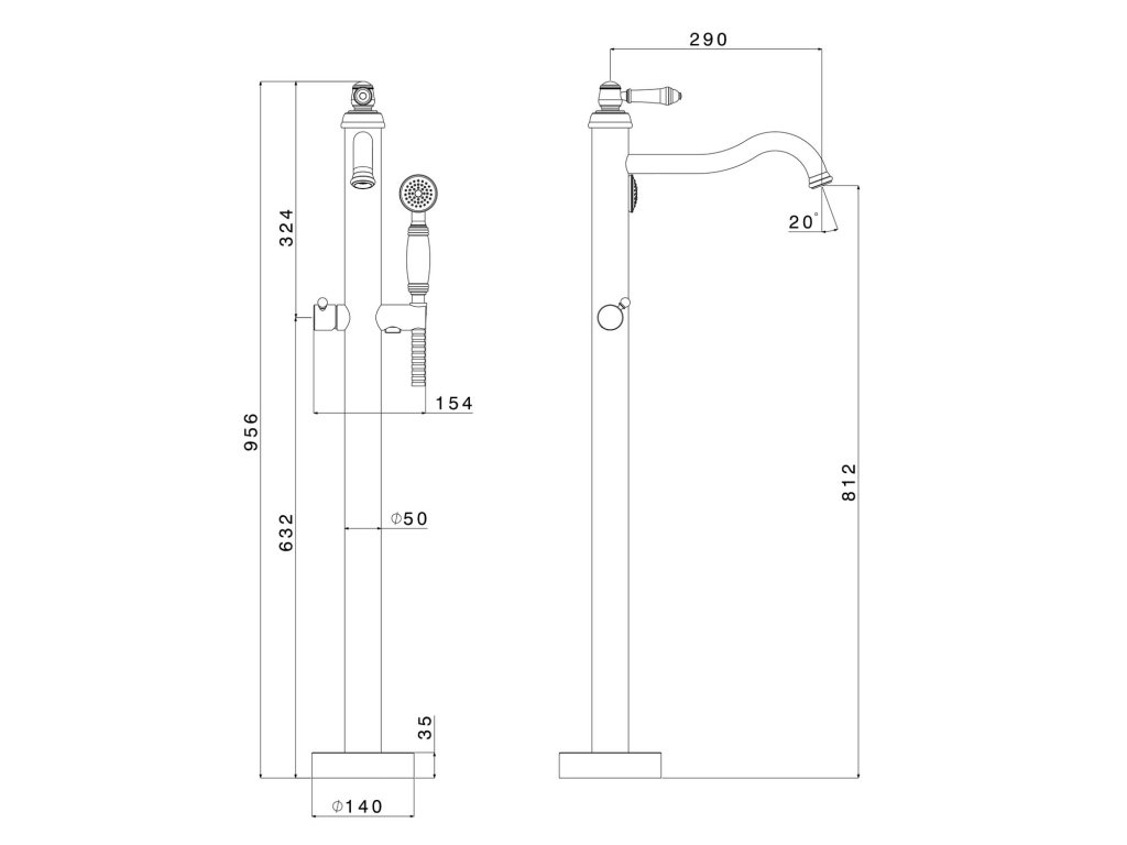 VERSI vanová baterie s připojením do podlahy, chrom