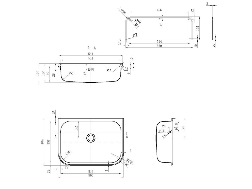 Závěsná výlevka se zády a roštem 560x165x404 mm, nerez mat
