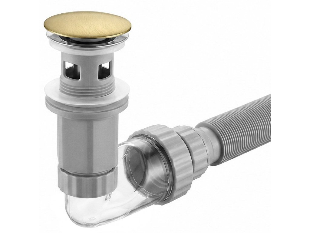 Umyvadlový sifon s univerzální výpustí click-clack REA Flow Brush Gold